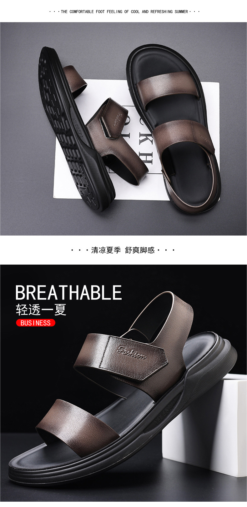 Men's Breathable Leather Outdoor Sandals